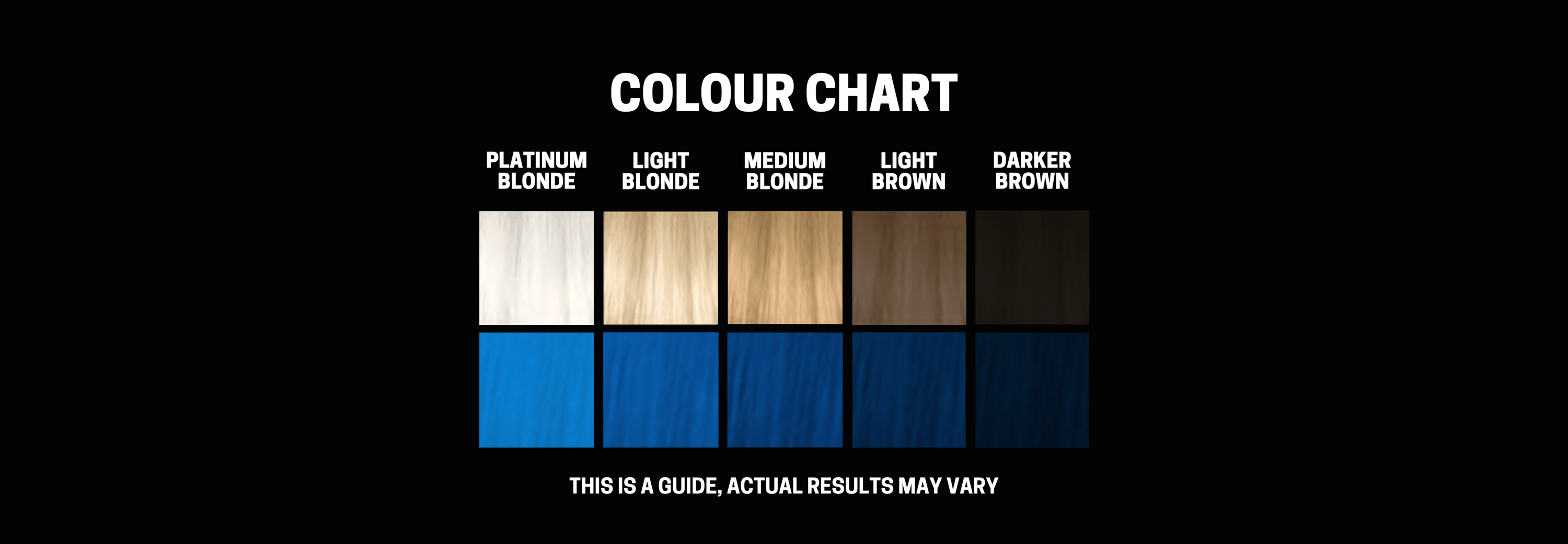 COLOUR RESULT CAN DEPEND ON MULTIPLE FACTORS MAINLY THE BASE COLOUR OF YOUR HAIR. SEMI PERMANENT COLOUR WORKS BEST ON HAIR BLEACHED TO HIGHER LEVEL BLONDE. IF YOU HAIR IS NOT BLEACHED TO A HIGH BLONDE WE RECOMMEND USING COLOURS WITH HIGH PIGMENTS SUCH AS BLUES & REDS.
